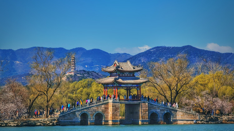 【颐和园】是中国现存规模大、保存完整的皇家园林,中国四大名园(另三座为承德避暑山庄、苏州拙政园、苏州留园)之一。位于北京市海淀区,距北京城区十五公里,占地约二百九十公顷。利用昆明湖、万寿山为基址,以杭州西湖风景为蓝本,汲取江南园林的某些设计手法和意境而建成的一座大型天然山水园,也是保存得完整的一座皇家行宫御苑,被誉为皇家园林博物馆。