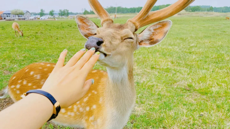 1.梅花鹿:几十只驯化好的梅花鹿个个像精灵一样注视着你,可贴身抚摸和喂食哦~