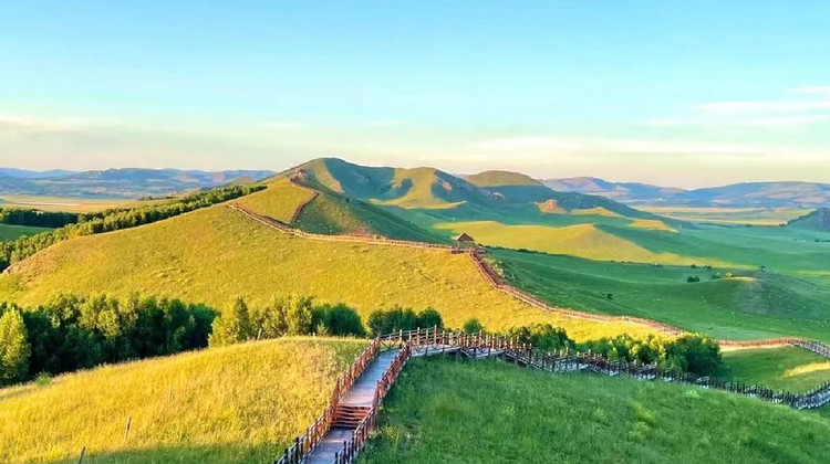 ④【影视基地】在此拍摄过《康熙王朝》、《还珠格格》、《如懿传》等百余部影视作品,是著名的影视外景拍摄基地;我们可以从木栈道上山,鸟瞰一下乌兰布统草原全景。