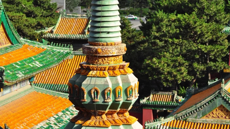 绿黄色的琉璃瓦片,汉藏的建筑结合