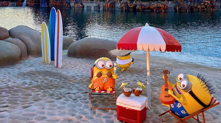 2.小黄人见面会:在超级萌乐岛的中央,小黄人已经按耐不住地想与你交个朋友!在拍照时可不要喊“茄子”,记得要喊小黄人的醉爱—“BANANA” !