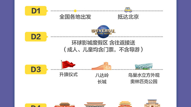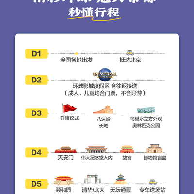 3.由于北京市区交通管控,尤其是2环内核心景区及靠近道路的酒店,均无法短暂停留供游客上下车,同时景区之间亦可能存在无法停车只能步行,因此每天需要步行的距离较多,非司机故意停远,请您谅解。