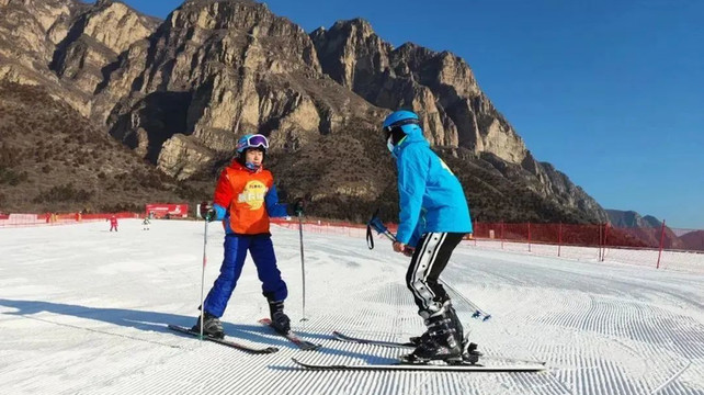 集合起航,乘大巴车前往滑雪基地,老师会在大巴车上讲解滑雪的行前知识等。蓟州国际滑雪中心(逢比赛或政策限制,用石京龙滑雪场)